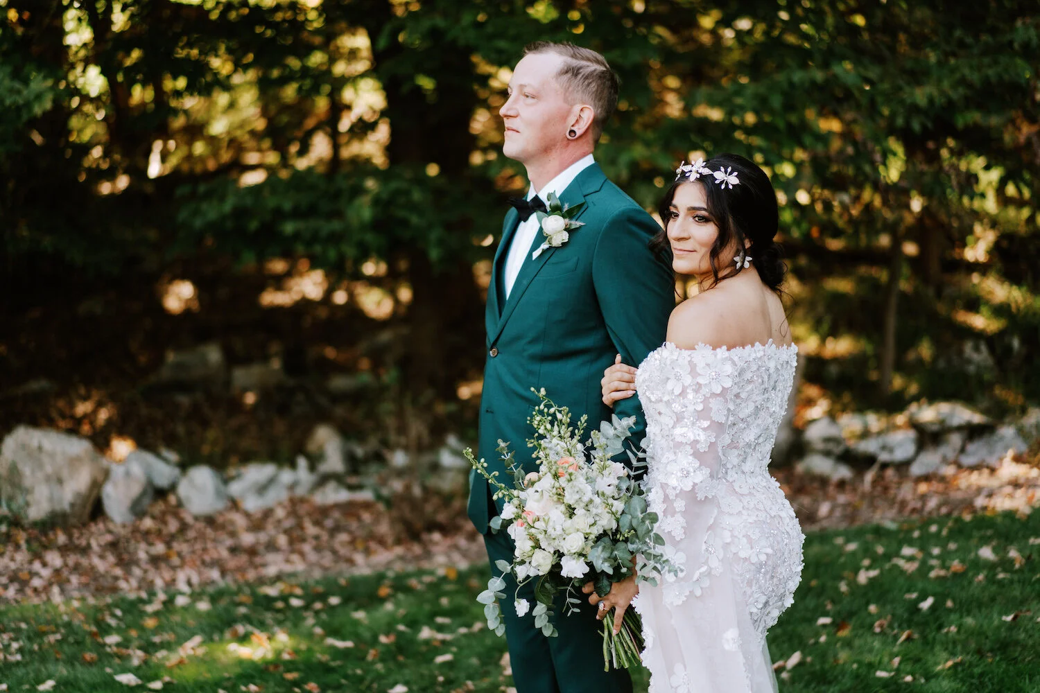 A Boho Luxe Perona Farms wedding with a Stephen Yearick wedding gown and Tilly Thomas Lux Crowns