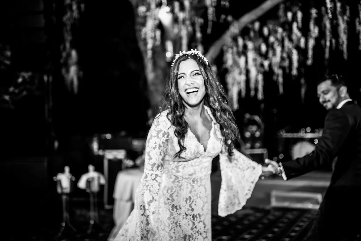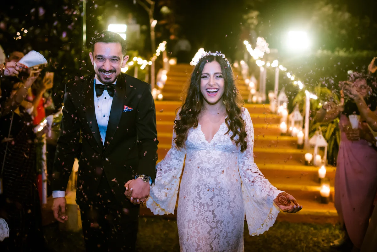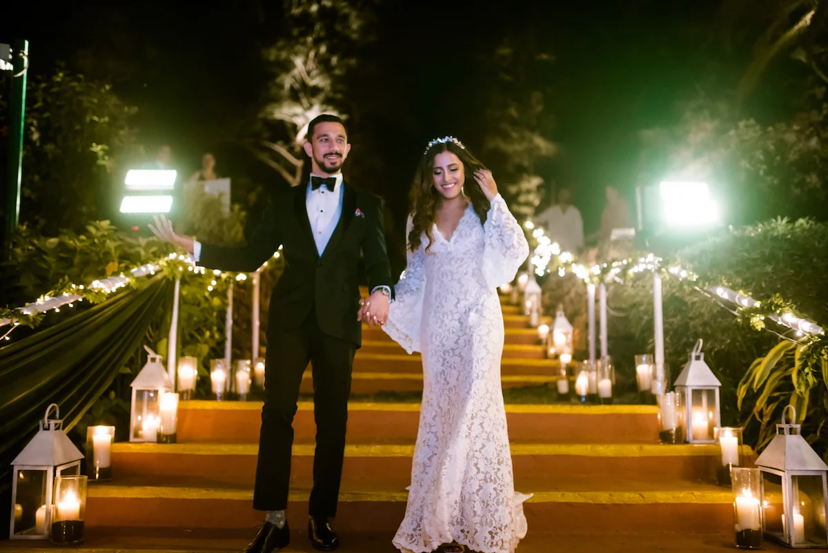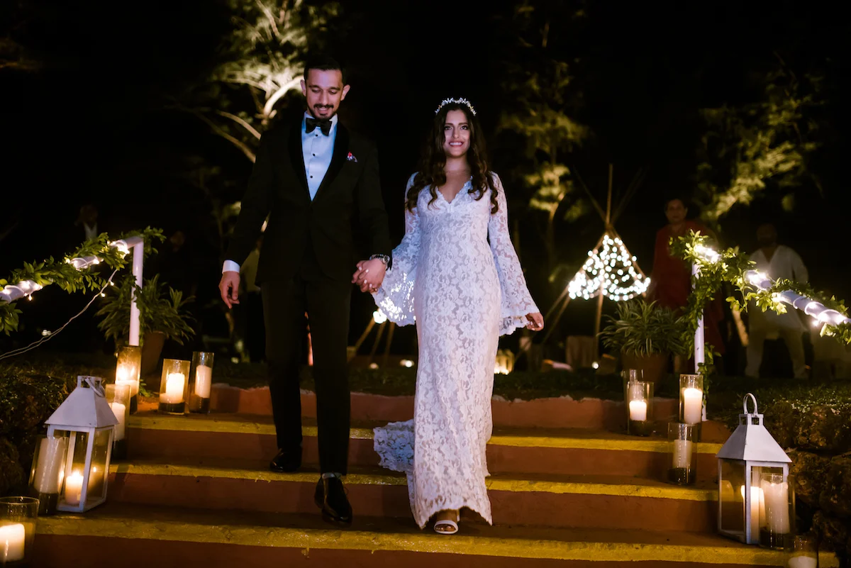 Stunning Lace Dress with Sleeves and a bespoke Tilly Thomas Lux crown for a Glamorous Wedding
