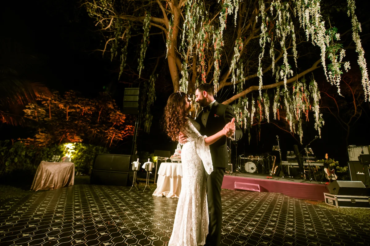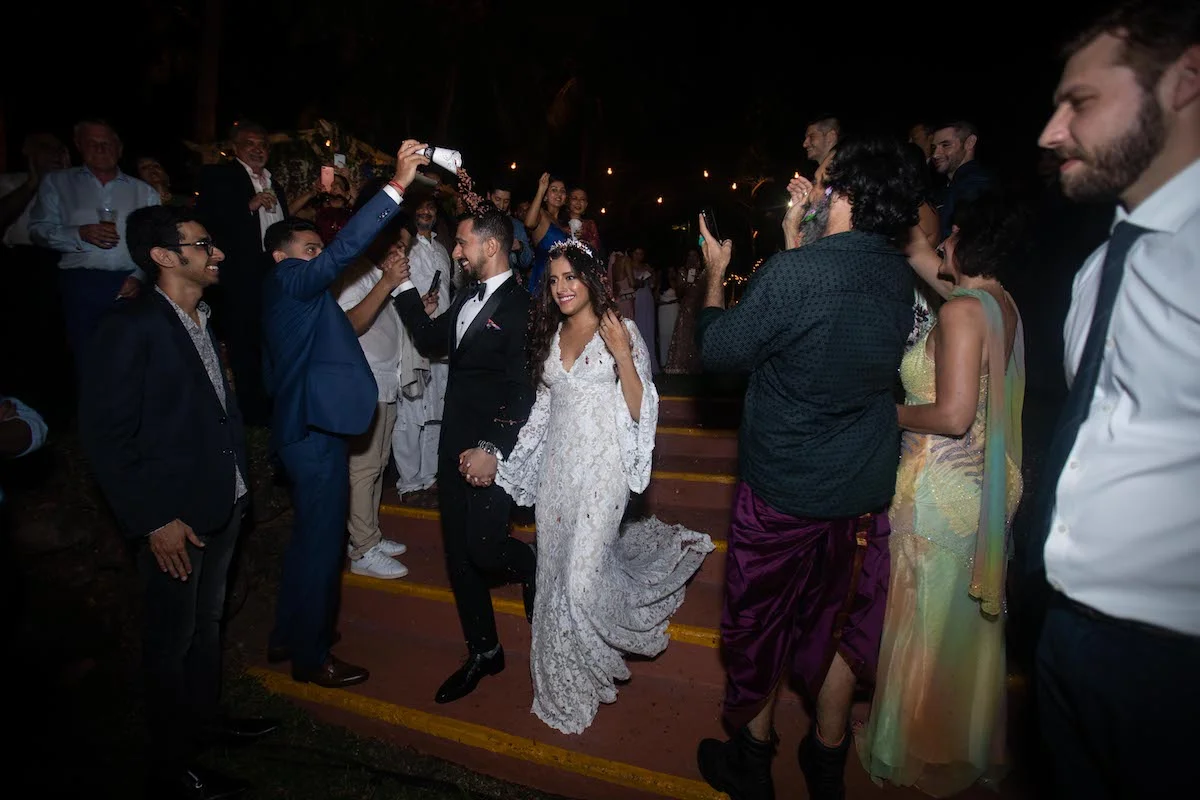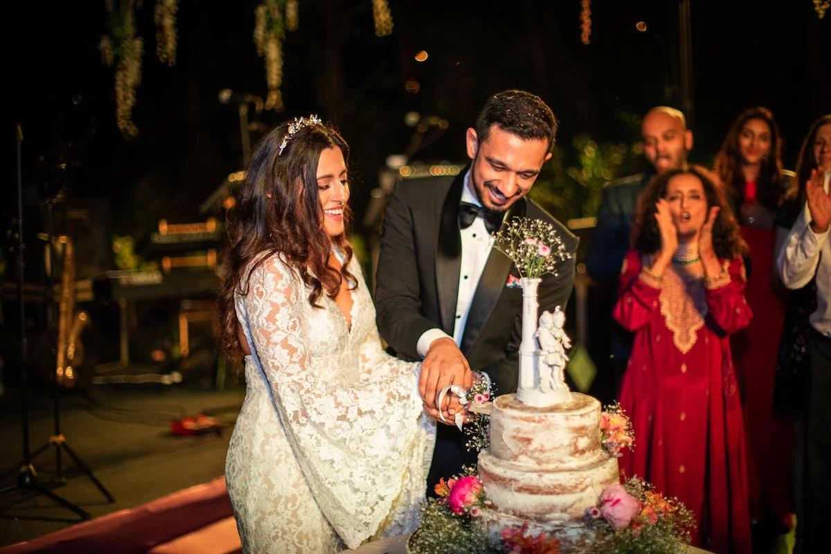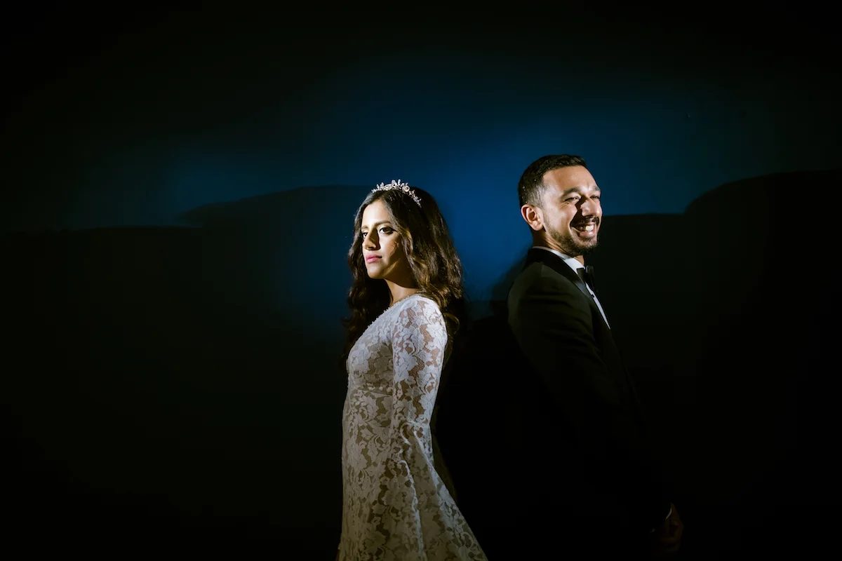 Stunning Lace Dress with Sleeves and a bespoke Tilly Thomas Lux crown for a Glamorous Wedding